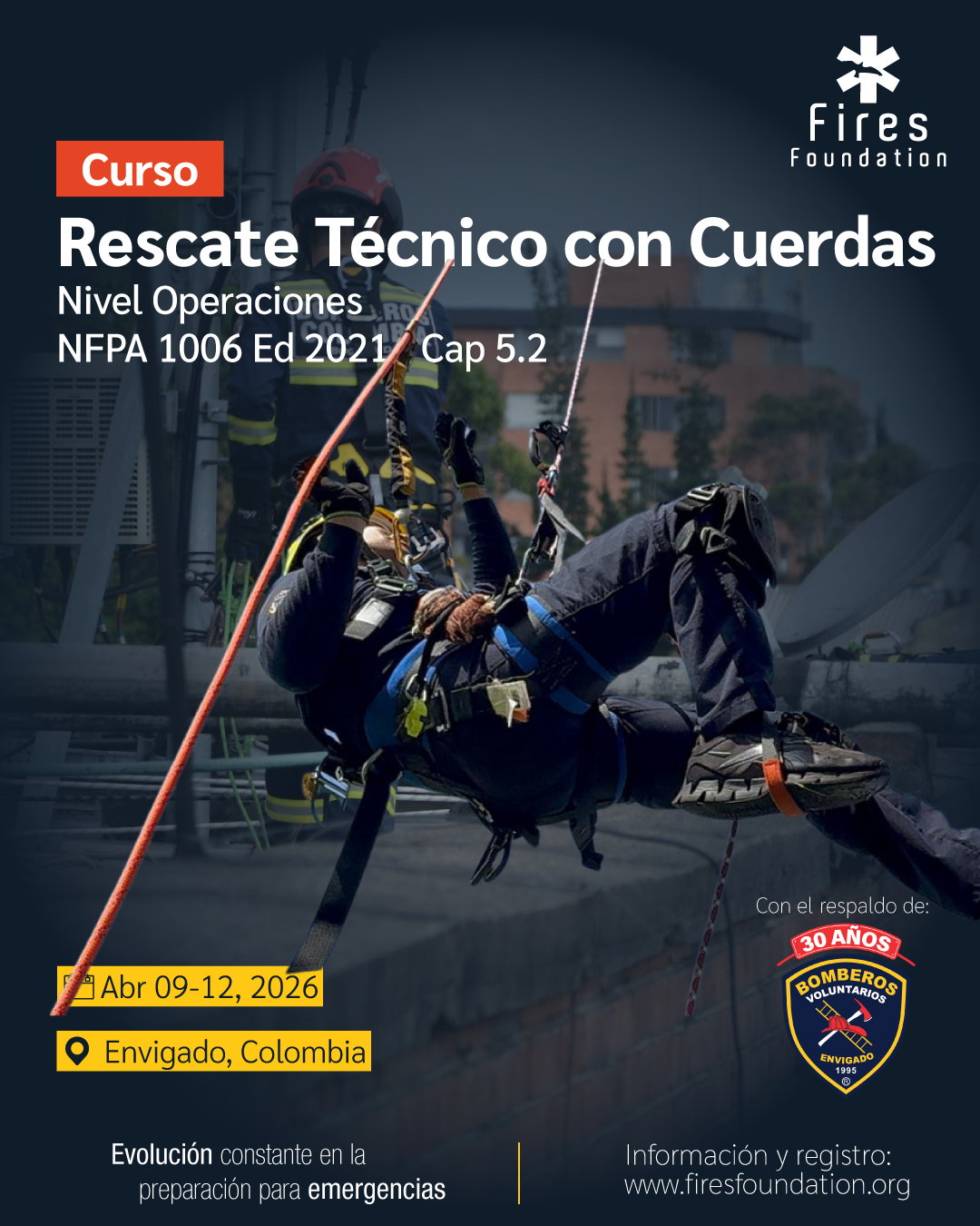 El curso Rescate con Cuerdas – Nivel Operaciones está diseñado para realizar de manera segura y eficiente técnicas de rescate utilizando cuerdas, identificando equipos, riesgos, componentes y sistemas en operaciones de emergencia que involucren localización, acceso, estabilización y extracción de víctimas involucradas en espacios verticales o de difícil acceso con riesgos inminentes de caídas a alturas.